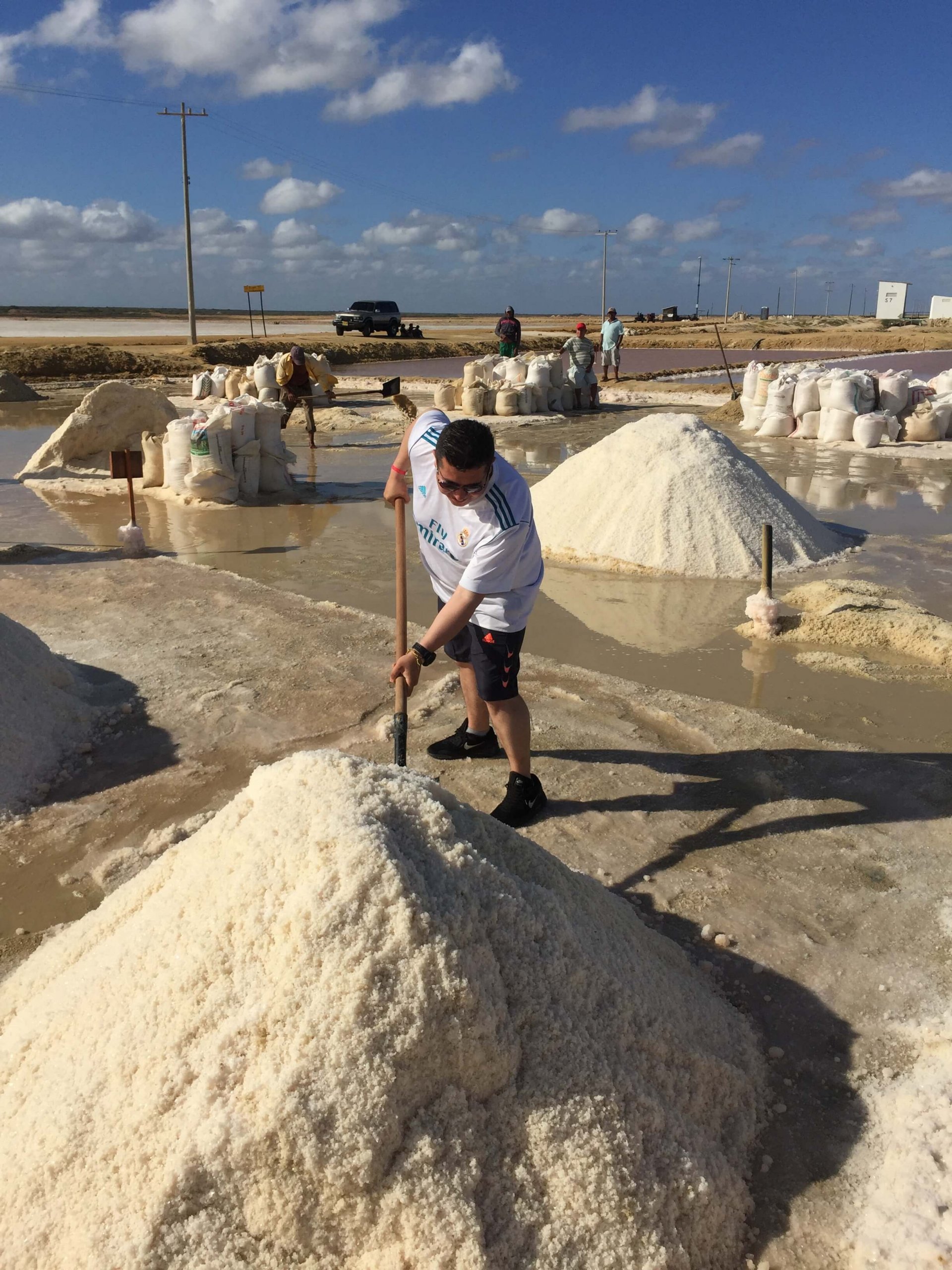 12:00 m. Almuerzo en el cabo de la vela. Continuaremos nuestro recorrido a las Salinas Marítimas de Manaure descender de la Alta Guajira a la Media Guajira es continuar presenciando oleajes violentos, playas de arena blanca, plácidas bahías, y todos los tipos de terreno que ofrece el inmenso desierto, desde arena suelta como talco, piedras grandes, pequeñas, lagunas y enormes salinas donde el horizonte se pierde entre brillos y destellos en las charcas salinas.